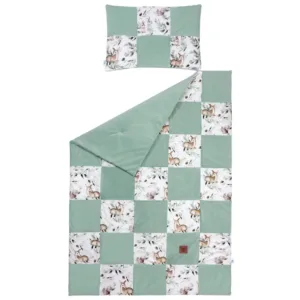 Plochý polštář podporuje správný vývoj páteře a deka o rozměrech 100×140 cm spolu s polštářem 40×60 cm jsou dokonale přizpůsobeny dětské postýlce.