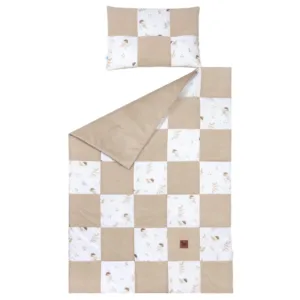 Patchworková přikrývka 100×140 s plochým polštářem 40×60 Lovely Bird s velvetem