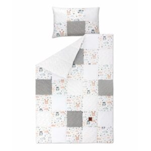 Vyrobená z jemné bavlny a měkkého velvetu, peřinka společně s polštářem poskytují dítěti maximální pohodlí. Výplň z antialergických vláken je bezpečná pro citlivou pokožku vašeho děťátka. Naše sada se postará o optimální regulaci teploty, a to po celý rok – jak během teplých, tak i chladnějších nocí.