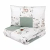 Plochý polštář podporuje správný vývoj páteře a peřinka o rozměrech 100×140 cm spolu s polštářem 40×60 cm jsou ideálně přizpůsobeny dětské postýlce.