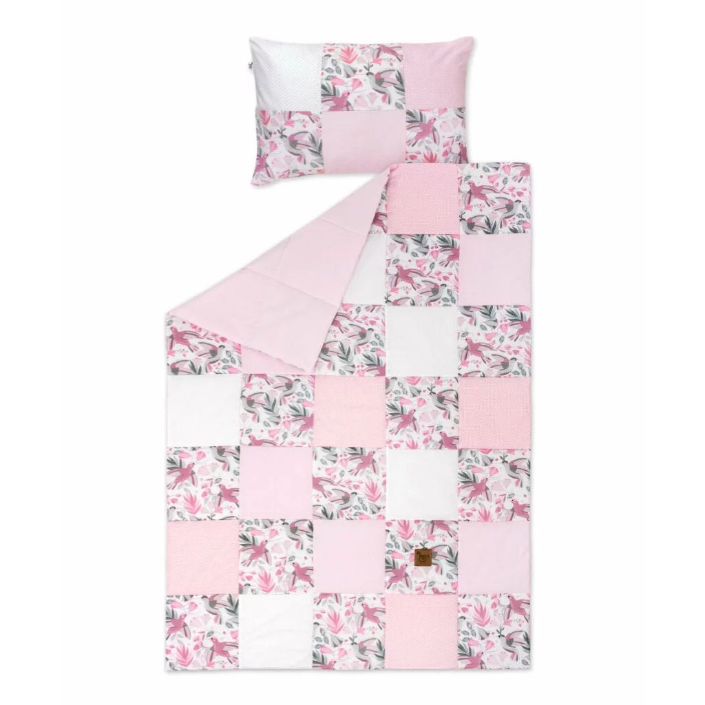 Vyrobená z jemné bavlny a měkkého velvetu, peřinka společně s polštářem poskytují dítěti maximální pohodlí. Výplň z antialergických vláken je bezpečná pro citlivou pokožku vašeho děťátka. Naše sada se postará o optimální regulaci teploty, a to po celý rok – jak během teplých, tak i chladnějších nocí.