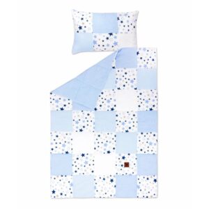 Plochý polštář podporuje správný vývoj páteře a peřinka o rozměrech 100×140 cm spolu s polštářem 40×60 cm jsou ideálně přizpůsobeny dětské postýlce.