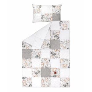 Vyrobená z jemné bavlny a měkkého velvetu, peřinka společně s polštářem poskytují dítěti maximální pohodlí. Výplň z antialergických vláken je bezpečná pro citlivou pokožku vašeho děťátka. Naše sada se postará o optimální regulaci teploty, a to po celý rok – jak během teplých, tak i chladnějších nocí.