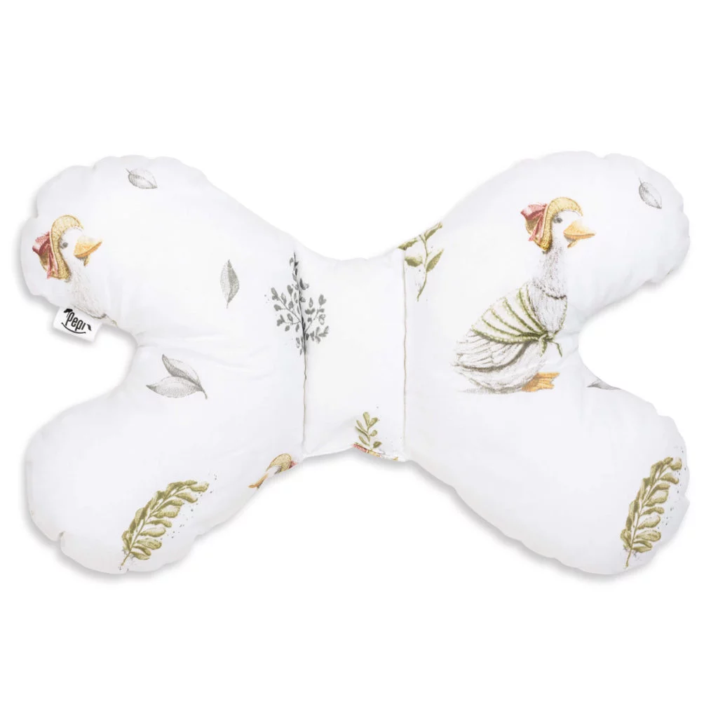 Polštář motýlek byl navržen s ohledem na jemnou stavbu těla nejmenších uživatelů. Jeho speciálně vyvinutý tvar podporuje přirozenou polohu hlavičky dítěte, čímž zabraňuje jejímu nekontrolovanému pohybu a možným mikroúrazům během spánku.