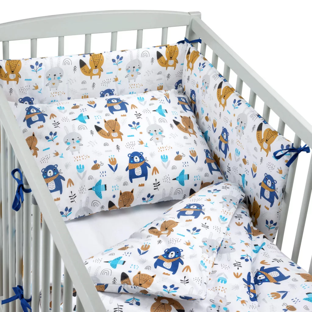 Mantinel chrání jemnou pokožku dítěte před náhodnými nárazy do boků postýlky, čímž vytváří bezpečný prostor pro odpočinek.