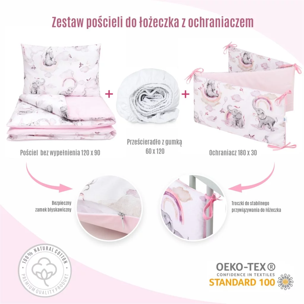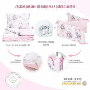 Mantinel chrání jemnou pokožku dítěte před náhodnými nárazy do boků postýlky, čímž vytváří bezpečný prostor pro odpočinek.