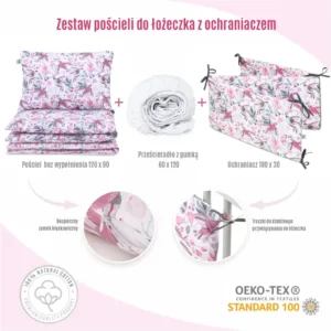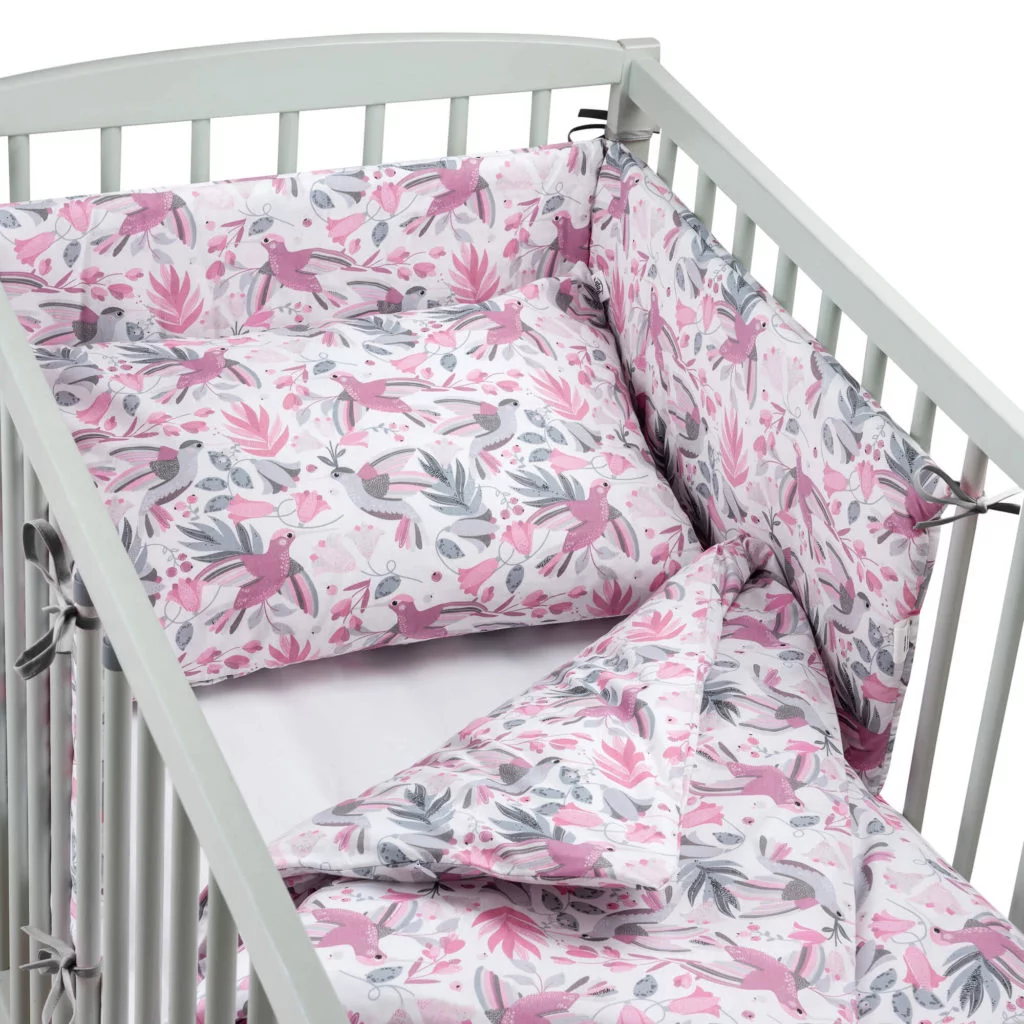 Mantinel chrání jemnou pokožku dítěte před náhodnými nárazy do boků postýlky, čímž vytváří bezpečný prostor pro odpočinek.