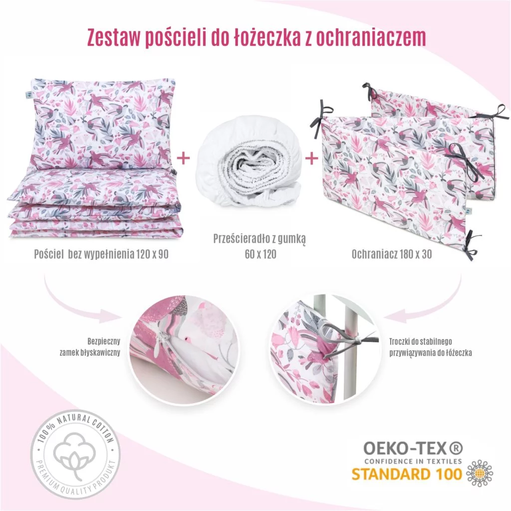 Všechny naše výrobky jsou ručně vyráběny v Polsku, což zaručuje péči o každý detail v každé fázi výroby. Jsou bez tvrdých prvků, což je činí bezpečnými pro kojence. Použité materiály mají certifikát STANDARD 100 by OEKO-TEX®, který zaručuje vysokou kvalitu a šetrnost k pokožce nejmenších.