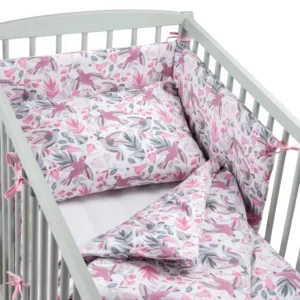 Mantinel chrání jemnou pokožku dítěte před náhodnými nárazy do boků postýlky, čímž vytváří bezpečný prostor pro odpočinek.