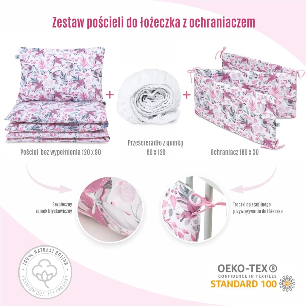 Všechny naše výrobky jsou ručně vyráběny v Polsku, což zaručuje péči o každý detail v každé fázi výroby. Jsou bez tvrdých prvků, což je činí bezpečnými pro kojence. Použité materiály mají certifikát STANDARD 100 by OEKO-TEX®, který zaručuje vysokou kvalitu a šetrnost k pokožce nejmenších.