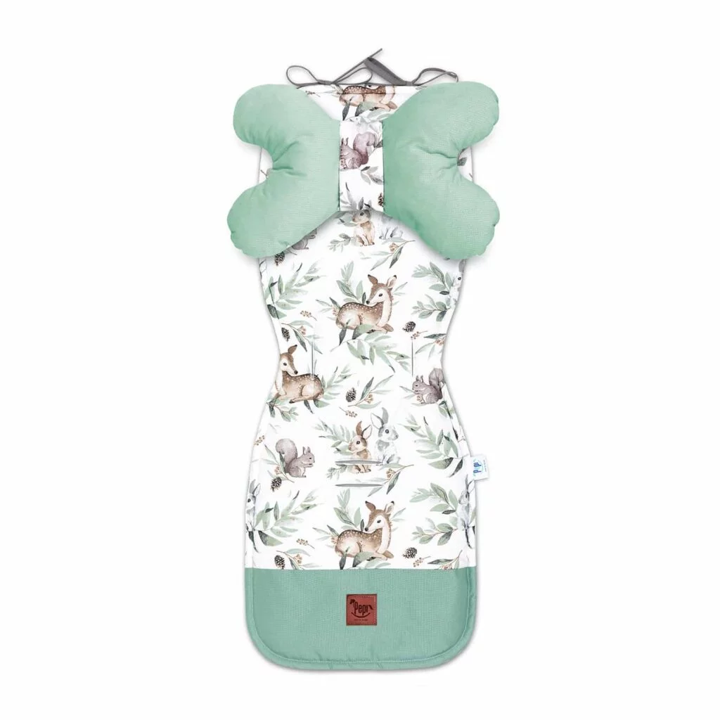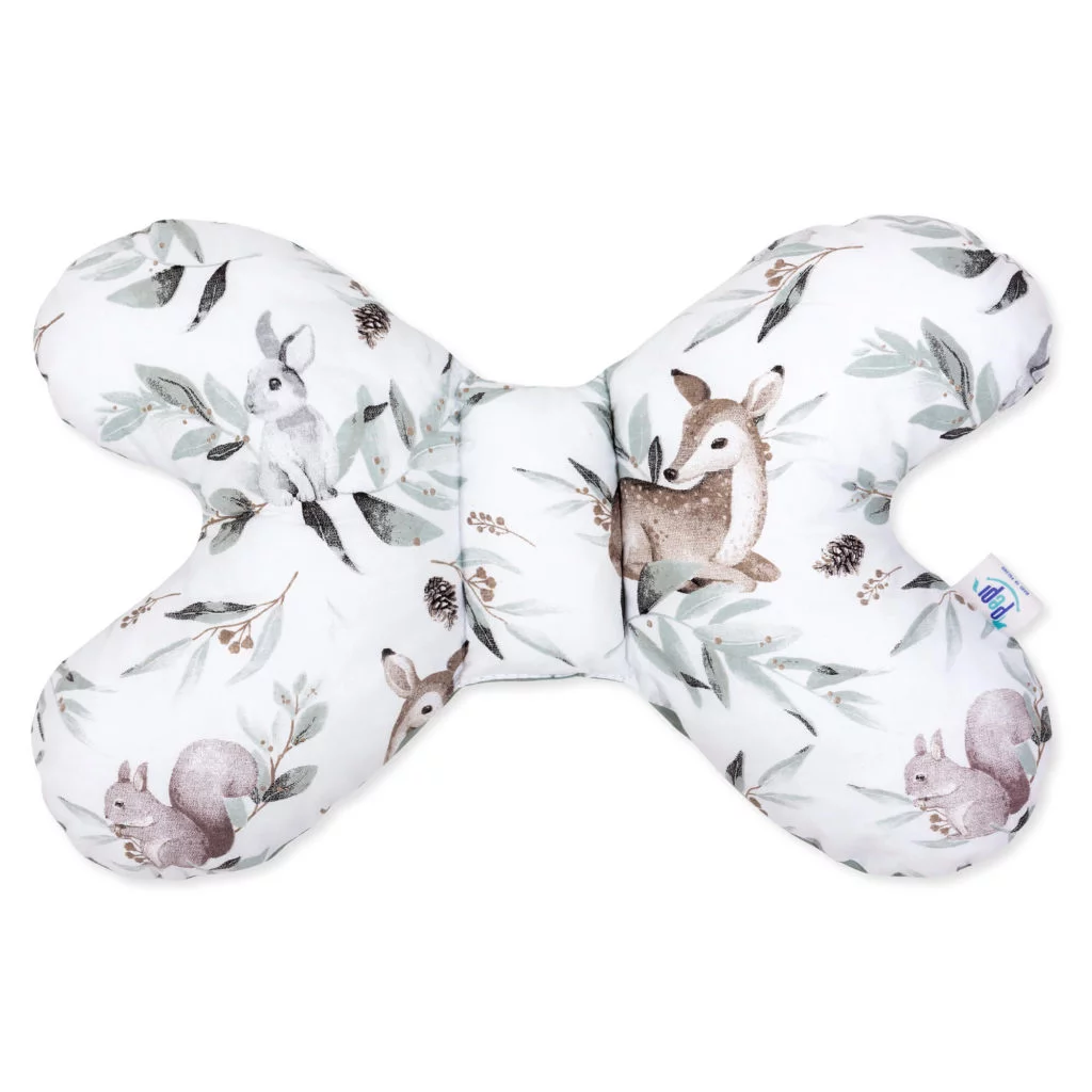 Polštář motýlek má speciálně navržený tvar, který podporuje přirozenou polohu hlavičky dítěte, zabraňuje jejímu nekontrolovanému pohybu a možným drobným úrazům.