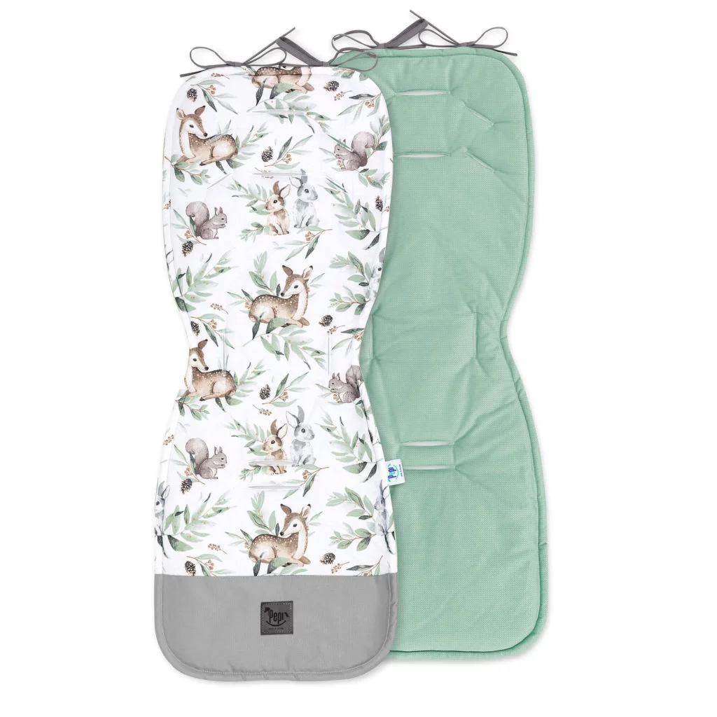 Oboustranná vložka je nepostradatelným doplňkem pro náročné maminky a jejich maličké. Má 6 otvorů na bezpečnostní pásy, což zajišťuje, že se hodí do většiny sportovních kočárků a autosedaček typu kolébka. Všité šňůrky umožňují připevnění vložky k rámu kočárku, což zabraňuje jejímu posouvání.