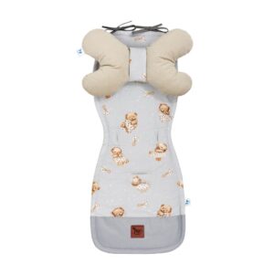 Oboustranná vložka je nepostradatelným doplňkem pro náročné maminky a jejich maličké. Má 6 otvorů na bezpečnostní pásy, což zajišťuje, že se hodí do většiny sportovních kočárků a autosedaček typu kolébka. Všité šňůrky umožňují připevnění vložky k rámu kočárku, což zabraňuje jejímu posouvání.