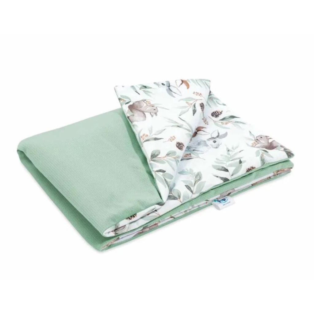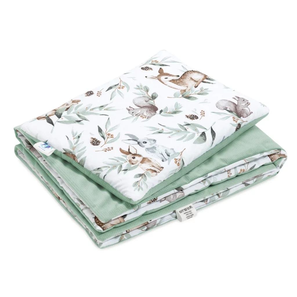 Výplň polštářku a deky je vyrobena z antialergických silikonových vláken, které zajišťují správnou termoregulaci, což garantuje klidný spánek pro miminko. Díky speciálnímu sešití výplně s dekou zůstává vnitřek stabilní jak při používání, tak při praní, čímž poskytuje dlouhodobé pohodlí a bezpečí pro dítě.
