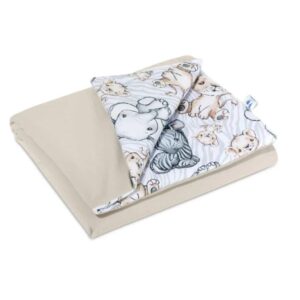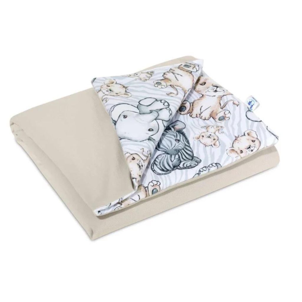 Výplň polštářku a deky je vyrobena z antialergických silikonových vláken, které zajišťují správnou termoregulaci, což garantuje klidný spánek pro miminko. Díky speciálnímu sešití výplně s dekou zůstává vnitřek stabilní jak při používání, tak při praní, čímž poskytuje dlouhodobé pohodlí a bezpečí pro dítě.