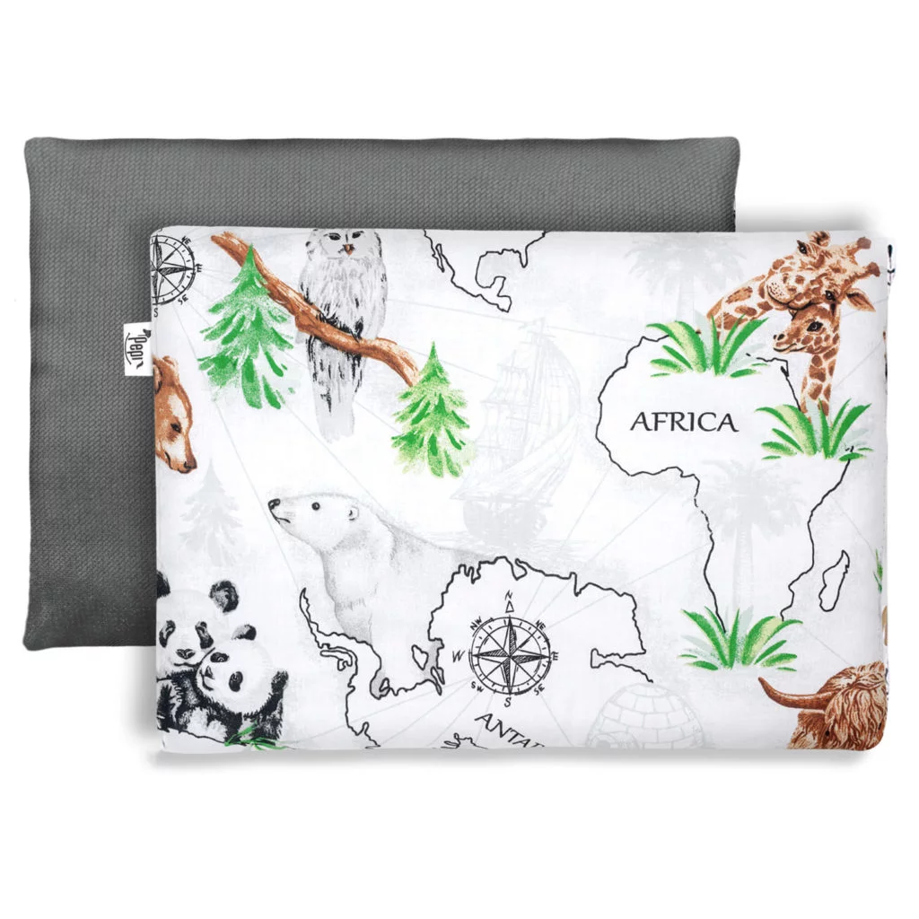 Oboustranný, plochý polštářek, navržený speciálně pro pohodlí dítěte, je vybaven výplní bez zipu, aby se zabránilo případnému podráždění pokožky malého dítěte.