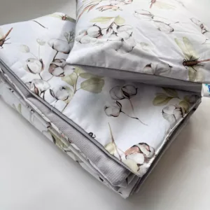 Výplň polštáře a přikrývky je vyrobena z antialergické silikonové vlákna, které dbá o správnou termoregulaci, což zaručuje klidný spánek pro dítě. Díky speciálnímu prošití výplně s přikrývkou zůstává interiér stabilní jak během používání, tak při praní, což poskytuje dlouhotrvající pohodlí a bezpečnost pro dítě.