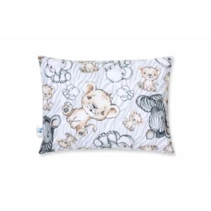 Dvoustranný polštář byl speciálně navržen pro pohodlí dítěte, je vybavený výplní bez zipu, aby se předešlo potenciálním podrážděním pokožky miminka.