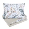 Výplň polštáře a přikrývky je vyrobena z antialergické silikonové vlákna, které dbá o správnou termoregulaci, což zaručuje klidný spánek pro dítě. Díky speciálnímu prošití výplně s přikrývkou zůstává interiér stabilní jak během používání, tak při praní, což poskytuje dlouhotrvající pohodlí a bezpečnost pro dítě.