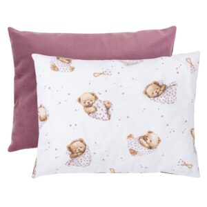 Dvoustranný polštář byl speciálně navržen pro pohodlí dítěte, je vybavený výplní bez zipu, aby se předešlo potenciálním podrážděním pokožky miminka.