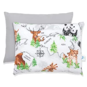 Dvoustranný polštář byl speciálně navržen pro pohodlí dítěte, je vybavený výplní bez zipu, aby se předešlo potenciálním podrážděním pokožky miminka.