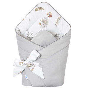 Zavinovačka se snadno přizpůsobí velikosti dítěte pomocí šňůrek, což zaručuje regulaci stupně zavinutí. Toto bezpečné a pohodlné zapínání eliminuje tvrdou sponu nebo suchý zip, které by mohly podráždit jemnou pokožku dítěte. Navíc zavinovačka usnadňuje krmení a nošení miminka, a po rozepnutí může sloužit jako dečka nebo hrací podložka.