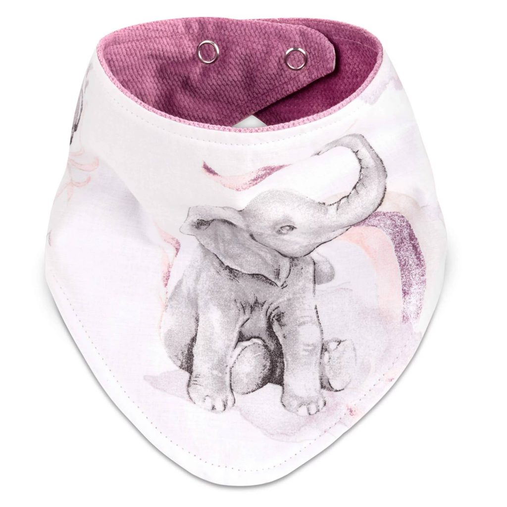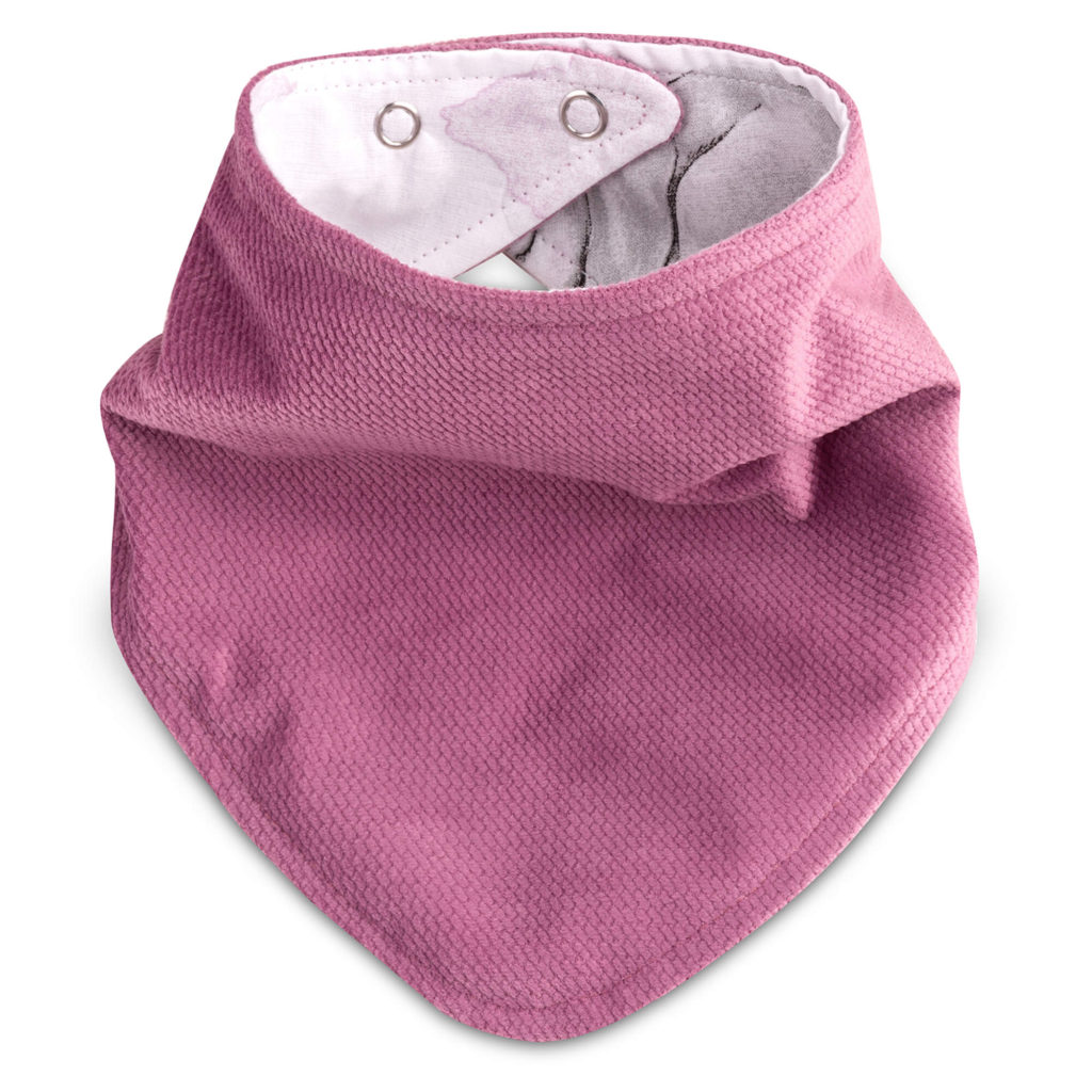 Vyrobený z nejkvalitnějších materiálů – měkké 100% bavlny a jemného velvetu, poskytujícího příjemný pocit na pokožce. Zapínání na pohodlné patentky zajišťuje stabilitu a jistotu, že nesklouzne z krku děťátka.