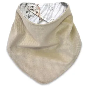 Vyrobený z nejkvalitnějších materiálů – měkké 100% bavlny a jemného velvetu, poskytujícího příjemný pocit na pokožce. Zapínání na pohodlné patentky zajišťuje stabilitu a jistotu, že nesklouzne z krku děťátka.