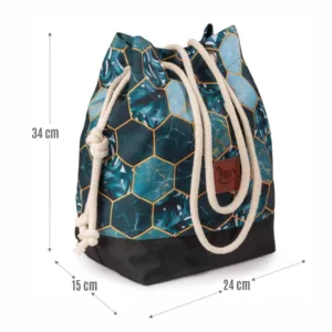 Je vyrobena z pevné, vysoce kvalitní tkaniny, která je voděodolná a odolná proti žmolkování.Vnitřek tašky je rovněž vybaven voděodolnou podšívkou a další kapsa na zip pomáhá udržovat pořádek. Silné bavlněné šňůrky dodávají styl a umožňují nastavení délky.