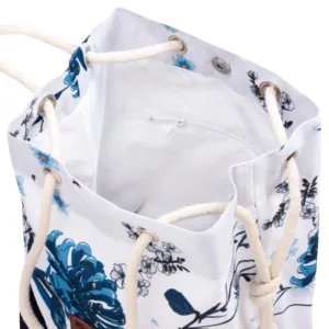 Je vyrobena z pevné, vysoce kvalitní tkaniny, která je voděodolná a odolná proti žmolkování.Vnitřek tašky je rovněž vybaven voděodolnou podšívkou a další kapsa na zip pomáhá udržovat pořádek. Silné bavlněné šňůrky dodávají styl a umožňují nastavení délky.