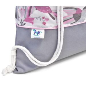 Horní část vaku je vyrobena z prodyšné bavlny, což zajišťuje správnou cirkulaci vzduchu a chrání obsah před vlhkostí. Spodní část vaku je ušita z odolného, voděodolného materiálu, který poskytuje ochranu před znečištěním a vlhkostí. Vak se stahuje bavlněnou šňůrkou s možností nastavení, takže si ho dítě může pohodlně nosit na zádech.
