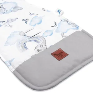 Oboustranná vložka je nepostradatelným doplňkem pro náročné maminky a jejich maličké. Má 6 otvorů na bezpečnostní pásy, což zajišťuje, že se hodí do většiny sportovních kočárků a autosedaček typu kolébka. Všité šňůrky umožňují připevnění vložky k rámu kočárku, což zabraňuje jejímu posouvání.
