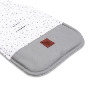 Oboustranná vložka je nepostradatelným doplňkem pro náročné maminky a jejich maličké. Má 6 otvorů na bezpečnostní pásy, což zajišťuje, že se hodí do většiny sportovních kočárků a autosedaček typu kolébka. Všité šňůrky umožňují připevnění vložky k rámu kočárku, což zabraňuje jejímu posouvání.