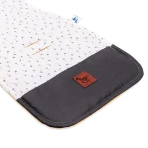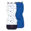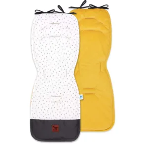 Oboustranná vložka je nepostradatelným doplňkem pro náročné maminky a jejich maličké. Má 6 otvorů na bezpečnostní pásy, což zajišťuje, že se hodí do většiny sportovních kočárků a autosedaček typu kolébka. Všité šňůrky umožňují připevnění vložky k rámu kočárku, což zabraňuje jejímu posouvání.