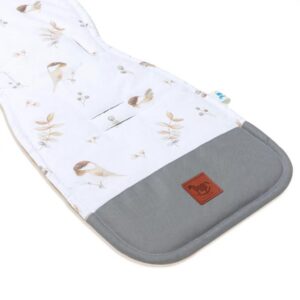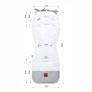 Oboustranná vložka je nepostradatelným doplňkem pro náročné maminky a jejich maličké. Má 6 otvorů na bezpečnostní pásy, což zajišťuje, že se hodí do většiny sportovních kočárků a autosedaček typu kolébka. Všité šňůrky umožňují připevnění vložky k rámu kočárku, což zabraňuje jejímu posouvání.