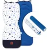 Nepropustná opěrka nohou z voděodolné tkaniny zabraňuje znečištění od mokrých bot, což usnadňuje péči o vložku. Chrániče na pásy zajišťují dodatečný komfort a bezpečnost během cestování, a jejich univerzálnost je ideální pro různé typy kočárků a autosedaček. Díky použití oboustranné látky a pohodlných suchých zipů jsou snadno montovatelné a použitelné.