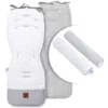 Nepropustná opěrka nohou z voděodolné tkaniny zabraňuje znečištění od mokrých bot, což usnadňuje péči o vložku. Chrániče na pásy zajišťují dodatečný komfort a bezpečnost během cestování, a jejich univerzálnost je ideální pro různé typy kočárků a autosedaček. Díky použití oboustranné látky a pohodlných suchých zipů jsou snadno montovatelné a použitelné.