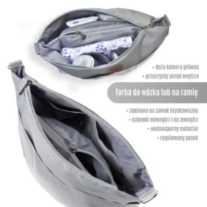 Moderní a stylová taška do kočárku, nezbytná při každodenních procházkách i delších cestách, nejen s kočárkem.