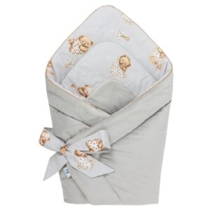 Zavinovačka je vázána pomocí jemné stuhy, což umožňuje její přizpůsobení velikosti dítěte a regulaci míry zabalení. Je to bezpečné a pohodlné zapínání, které vylučuje použití tvrdých prvků, jako jsou suché zipy, které by mohly podráždit citlivou dětskou pokožku.