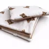 Zavinovačka je vázána pomocí jemné stuhy, což umožňuje její přizpůsobení velikosti dítěte a regulaci míry zabalení. Je to bezpečné a pohodlné zapínání, které vylučuje použití tvrdých prvků, jako jsou suché zipy, které by mohly podráždit citlivou dětskou pokožku.