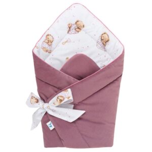 Zavinovačka White Sleeping Tedy Bear s velvetem old rosa